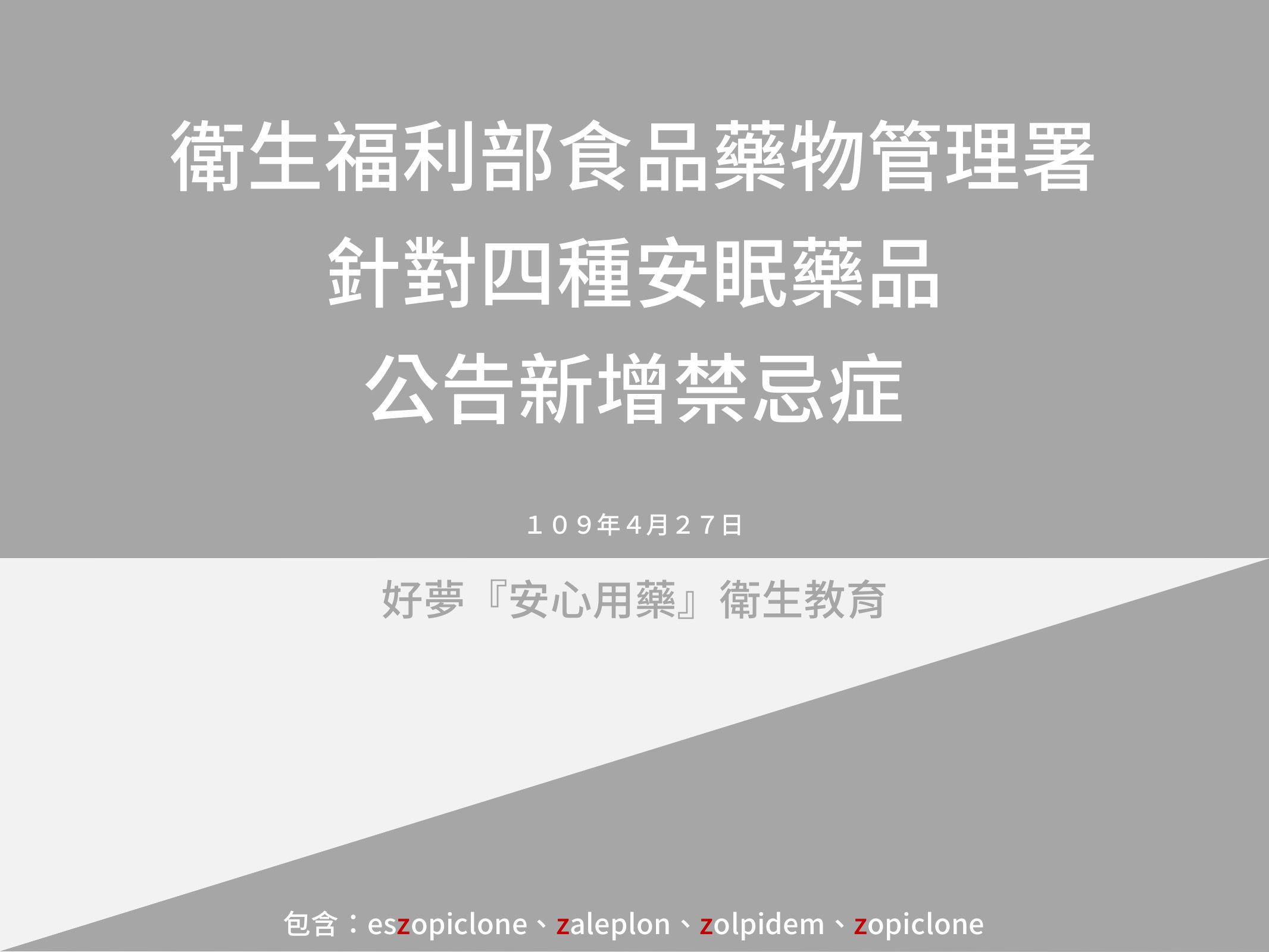 因為上述藥品可能導致夢遊、夢駕等危險行為風險,美國於先前已禁止醫師持續開藥給服用後曾經發生夢遊、夢遊開車等行為的個案,國內經食藥署重新評估該類成分藥品的臨床效益及風險,並提藥品安全評估諮議小組討論後,決定跟進並新增禁忌症。